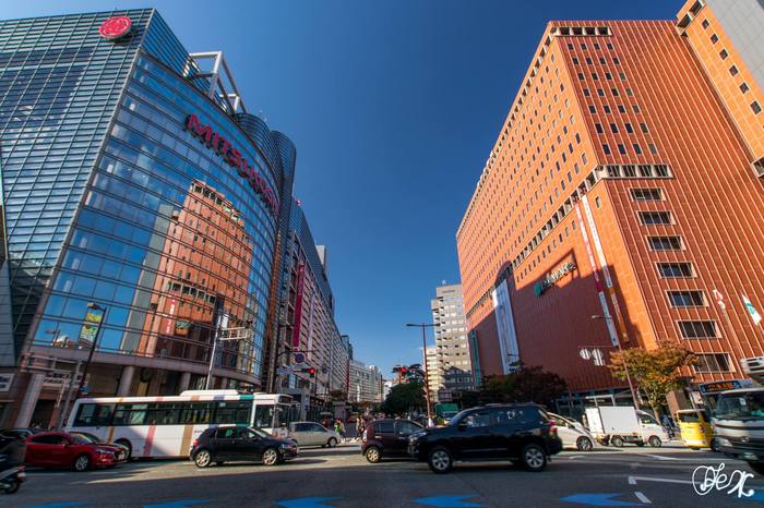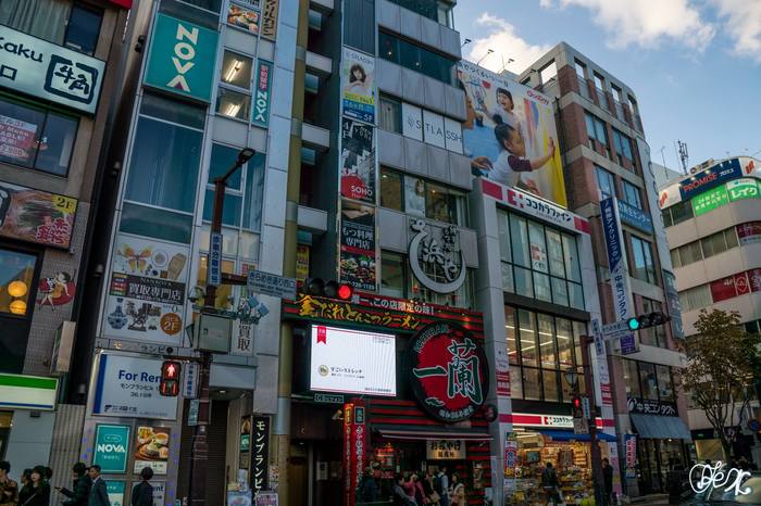Как я уже говорил, Тендзин - это торговый центр города. Здесь много различных модных супермаркетов и прочими дорогими шмотками и аксессуарами. В здании на фотографии ниже на последнем этаже находятся магазины с такими аксессуарами, такими как дорогущими кроссовками, золотыми массажёрами для морды лица типа лакшери, а также художественная выставка.