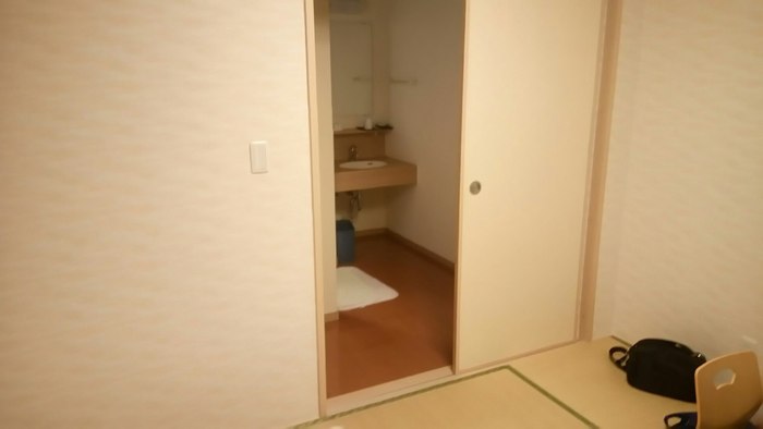 Когда вошёл, меня встретил харизматичный бодрый дед, эдакий типичный японский слуга, поприветствовал и попросил разуться. На входе - традиционный порог с тапочками, обувь надо оставлять у входа. После регистрации он сказал, что заселение начинается с 3 часов дня, поэтому сейчас я могу оставить свои вещи, а он на тележке их потом занесёт мне в номер.