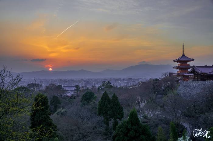 Потом на выходе моя спутница сказала, что она пойдёт по своим делам, а сейчас проводит меня до моей станции и объяснит, как доехать до Кёмидзу-дера, где можно сфотать офигенный закат. Проводила, показала автобус, сказала - Вот тут садишься на этот автобус. На нём написано - Кёмидзу-дера. Назад поедешь - на нём будет написано Станция Киото.