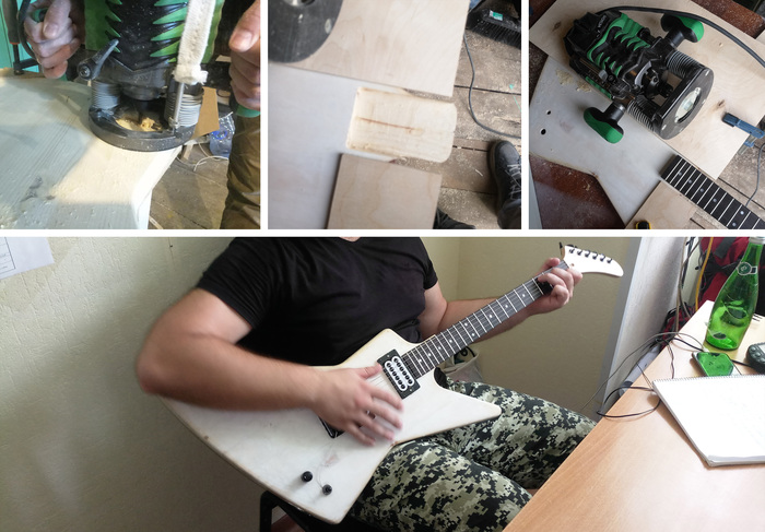 Нужно отметить, что данный персонаж ютубувских прерий подкупает именно тем, что он не профессионал ДиАйВай развлечений (ну знаете, эти парни с фразами «Сейчас быстренько выточим на заводском станке втулочку из заготовочки и сделаем болгарку при помощи болгарки») и смотря на его работу я, уже имея опыт в жизни делать что-то своими руками без опыта и не питающим по этому поводу иллюзий, думаю что да, вот примерно такое у меня бы и вышло. Но не смотря на легкое отсутствие качества работы в басухе Ваганыча, но у него ведь всё получилось: всё работает, всё играет. И я подумал… я ведь тоже так могу. Да будет криво, но, камон, прикольно же. А я ведь так давно хотел гитару в форме Эксплорер. Хэтфилд – ванлав ♥.