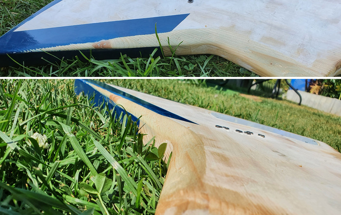 И, вот наконец, в 2022, как и многое в этом году, копившееся напряжение выплеснулось в стойкое желание произвести, наконец, хоть какие нибудь покрасочные работы. Но перед этим я снова привлек коллегу с фрезером, дабы он свое опытной рукой исправил главный недостаток – ублюдскую пятку грифа - эта толстая неуклюжая квадратина дико-бешено вымораживала при игре внизу грифа. Треть этой мразины была нахер срезана, заодно углубили место прилегания металлической площадки и как то сразу вот пропало чувство угнетающей кустарности, в руках появилось ощущение элегантности, удобства и гордости за свою смекалку, ах. Умолчим, что я спер эту довольно очевидную идею у своей нормальной гитары, бгг.