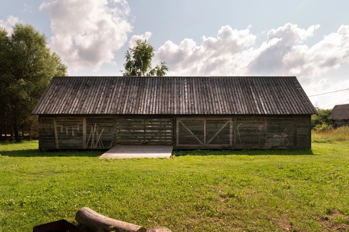 Московское архитектурное бюро MANIPULAZIONE INTERNAZIONALE: «Жизнь сарая — это застывшие и забытые предметы внутри и снаружи. Солнце выжгло его стены, оставляя отпечатки предметов и людей, деревьев и кустов, колёс и брёвен — всего того, что стояло и сидело вокруг сарая, и чего сейчас нет. Посмотри и вспомни, как это было и как это будет».