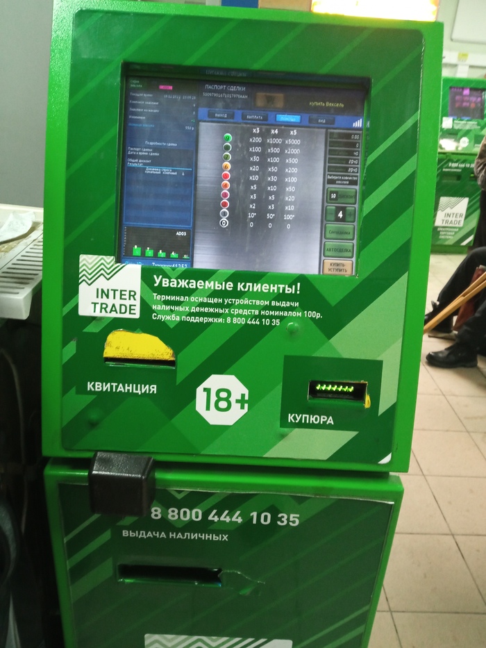 10 rojo550 Игровые автоматы опять разрешили?) 2 года назад Екатеринбург автовокзал северный.. Стоят игровые автоматы с надписями "трэйд" И якобы продают векселя)) . Насколько это законно? Если брокер то должна быть лицензия и камера.. Там так можно на штрафовать. А если все ж автоматы то где Полиция? Показать полностью 3 Ставки Полиция Длиннопост 1 Ещё 0