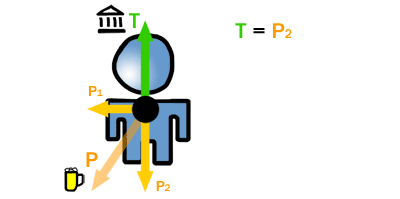 Если силу P1 пивной кружки женщина может компенсировать увеличив сытность ужина, то на мужика по прежнему будет действовать та часть силы пивной кружки, которая тянет его вниз. Из-за отсутствия равновесия мужик медленно, но верно пойдёт к бренному существованию.