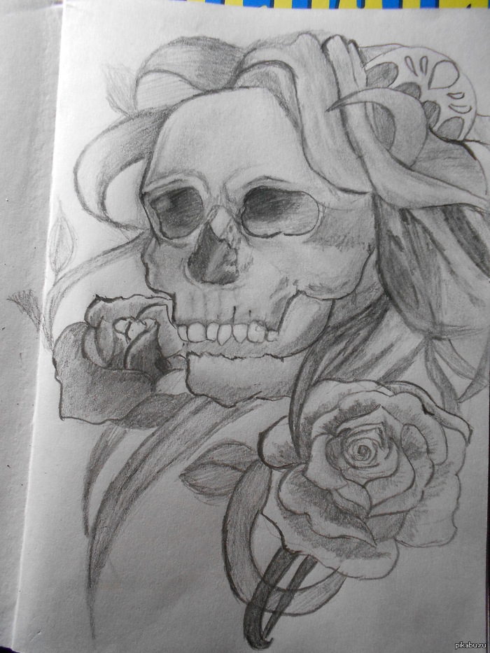 roksmudak Скучный урок 12 лет назад попытки рисовать [моё] Рисунок карандашом Череп Эскиз татуировки