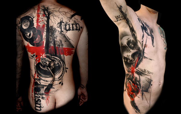 Трэш полька – стиль тату, который объявляет протест современному гламуру. «Трэш» в переводе с английского означает хлам, мусор. Стиль трэш полька подойдет неординарным людям, имеющим неформальное мышление и желание не походить на общую массу.