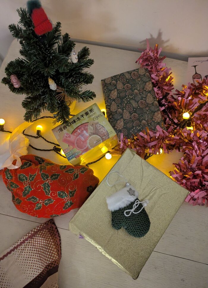 Внутри оказалась ёлочная игрушка, сделанная в городе Клин, то есть в родном городе отправителей.
