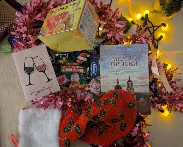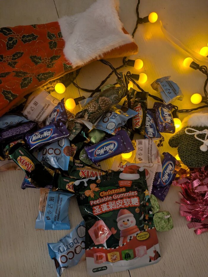 А ведь это еще не все. Был красный носок, который "для удовольствие". На ощупь я уже понимала что там...