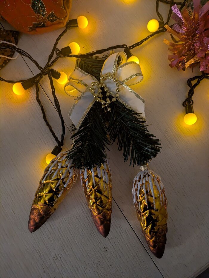 Большой ёлки у меня нет, но я быстро нашла где повесить такую красоту. Ну красиво же, ну.