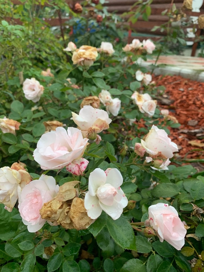 Эти Розы легко отличить по очень мощному аромату мускуса . Похожи по характеристикам на флорибунды , но цветок в основном ещё мельче , а самих цветов гораздо больше. Зелени практически не видно ...