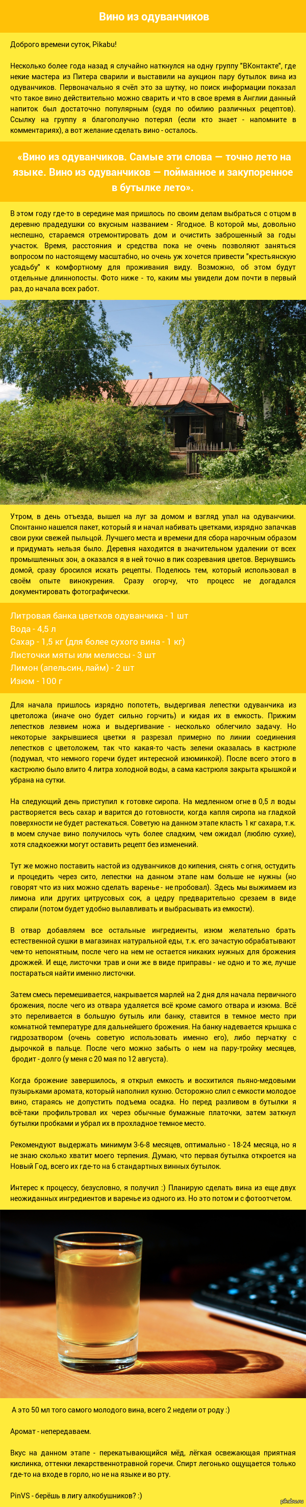 35 rscout13 10 лет назад Вино из одуванчиков Показать полностью 1 [моё] Вино из одуванчиков Алкоголь Длиннопост