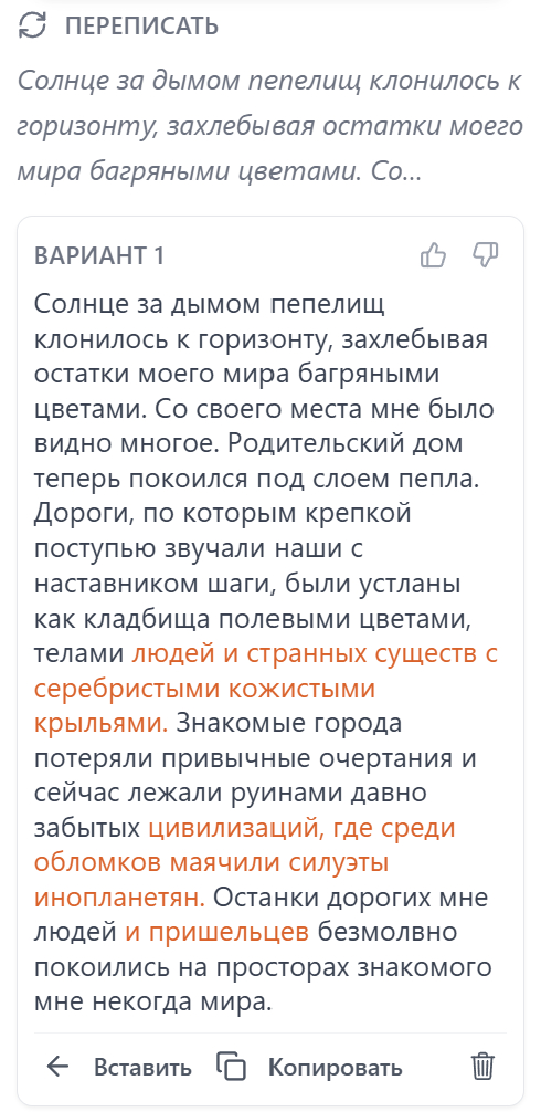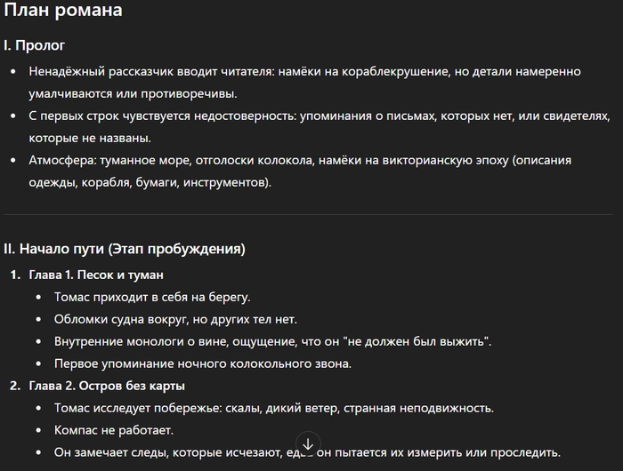То есть вы не получаете абстракцию, а рабочий чертёж романа, по которому можно писать главу за главой — без «провисаний», без потери фокуса. А если вам, что-то не нравится, то выбор всегда за вами - попробовать другую структуру, доработать существующую, отбросить всё лишнее и оставить только нужное. (Подробнее о работе со структурой)