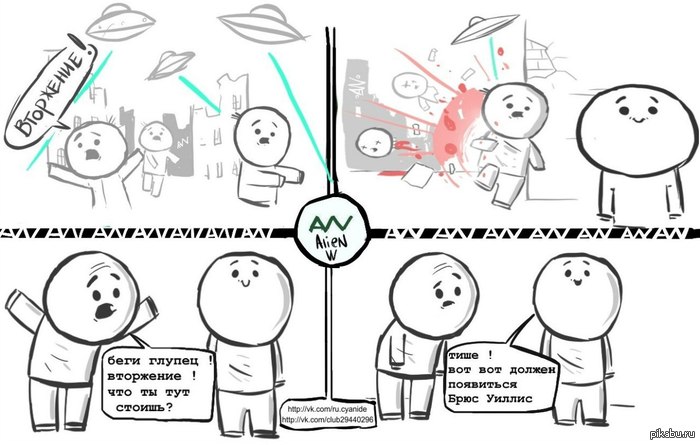 rucyanide Герои нашего времени 12 лет назад Комикс от команды ru.cyanide (автор Alien) Cyanide and Happiness Комиксы Чужой Пришельцы Брюс Уиллис
