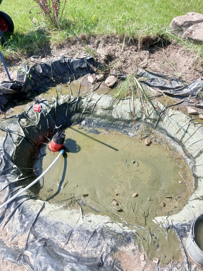 Решено переделать прудик. Посмотрел цены на материал для гидроизоляции, 10т.р. минимум нужно. Жаба душит. Осушаю болотце дренажным насосом