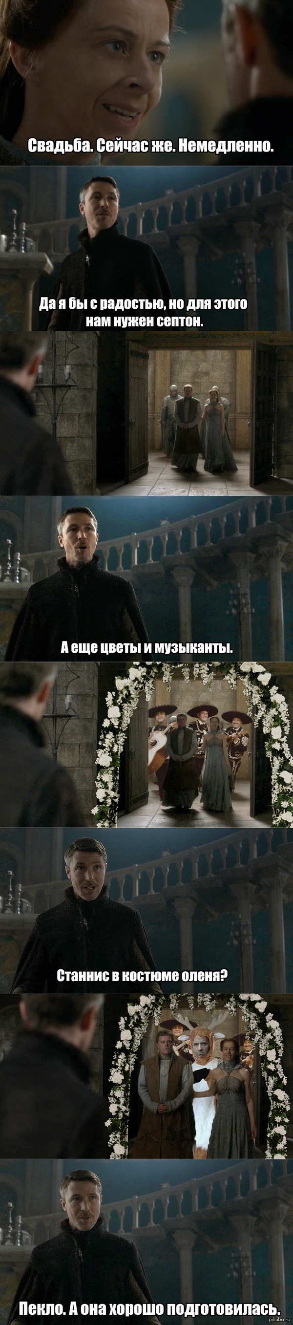 1050 rusek1359 10 лет назад Захомутали http://joyreactor.cc/ баяномер в 0 Показать полностью 1 Игра престолов Петир Бейлиш Свадьба Юмор Станнис Баратеон Не мое Длиннопост