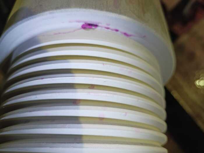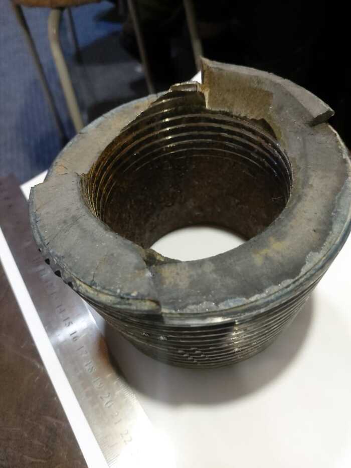 Трещина в резьбе. Ультрафиолетовая магнитнопорошковая дефектоскопия.