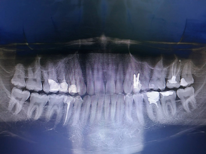 Рентген снимок сварного шва. Шов хороший, но есть артефакт прямо на шве.