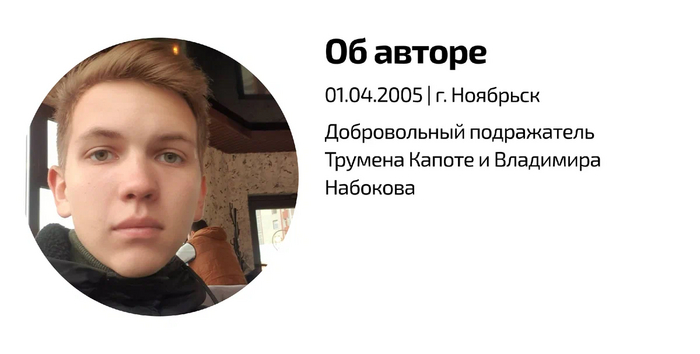 Я угадал: она была меня старше. На девять лет. Я узнавал у неё только какие-то общие моменты: местная/не местная — местная, кем работает — репетитором по литовскому языку (представьте себе!), и всё такое прочее. Она же спрашивала обо мне больше: долго ли я учился рисовать — я вообще не учился, взял в детстве карандаш, и давай малевать всё подряд, так кто-то берёт фотоаппарат и начинает фотографировать мамупапубабушкудедушкуфонарьсобакумашинусоседейкрыльцоещёсобакудвухкошекдачугрибы, и всё это вне правил композиции и без других умностей; нравится ли мне учиться — мне нравилось именно то, что я ничему не учился; как я планирую зарабатывать — я не планировал, а зарабатывал: порисовывал что-нибудь на заказ, иногда папа мне какую-то нетрудную работу подыскивал, он у меня в детском издательстве большой человек, так что множество детей и их экзальтированных мам лили слёзы умиления над моими собачками и ёжиками.