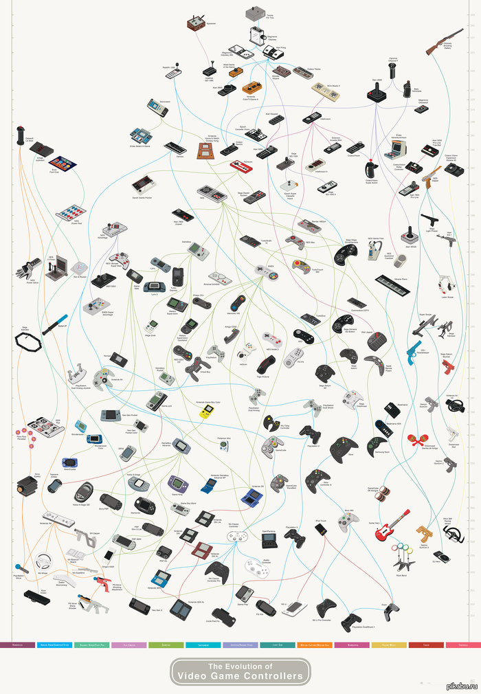 1 rusvolf 12 лет назад Инфографика видеоигр Генеалогия контроллеров видеоигр Джойстик Компьютерные игры Инфографика
