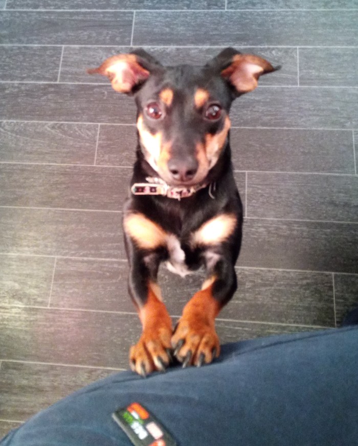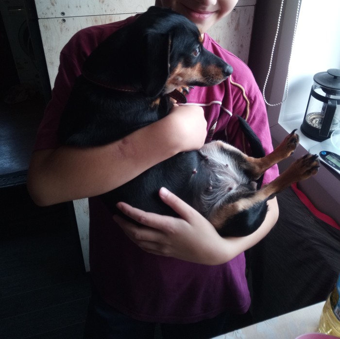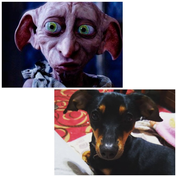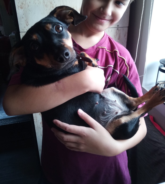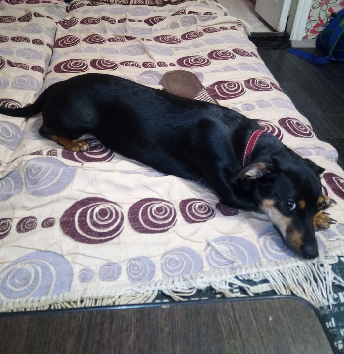 Создание попалось здоровое но мелкое, молчаливое и характерное. Мес до 3 была типичная такса с короткими лапками колесом и висячими ушками. А вот затем решила отрастить ноги (привет генам папашки). Колбаса на спичках😁. Ушки резко развернулись и теперь имеем не таксу а собачий вариант Добби😂