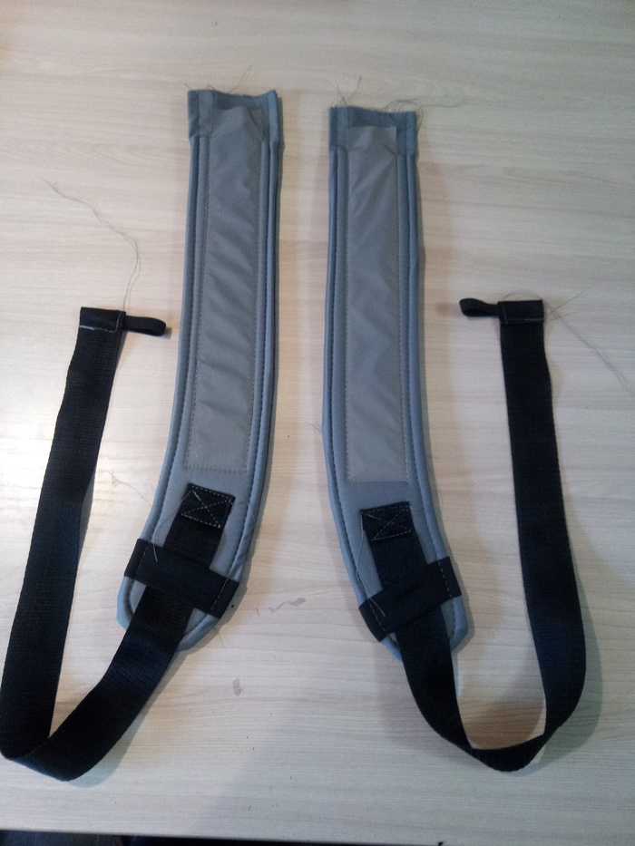 Соединяем это с деталью спинки, вставляем уплотнитель, пришиваем лямки и пряжки.