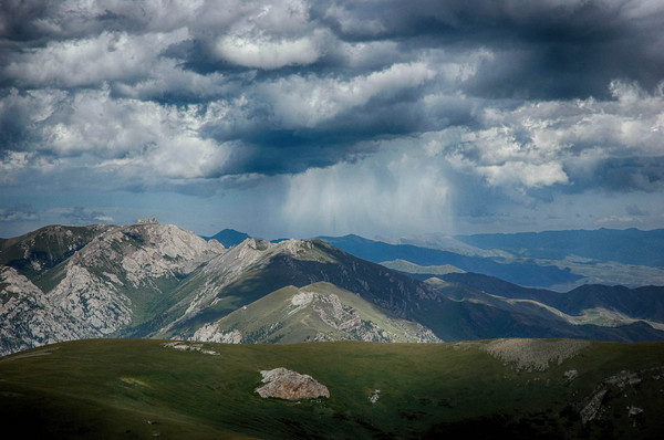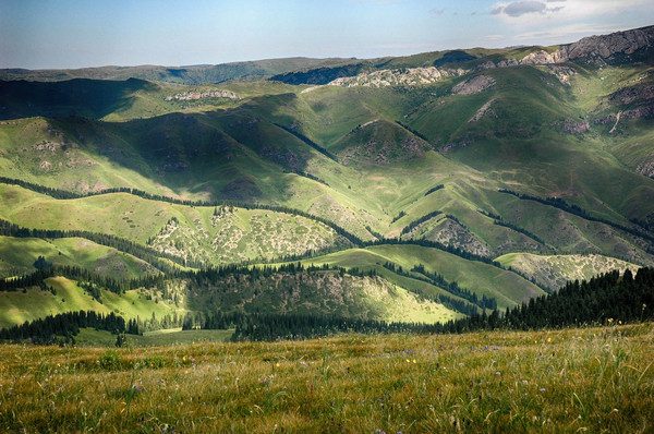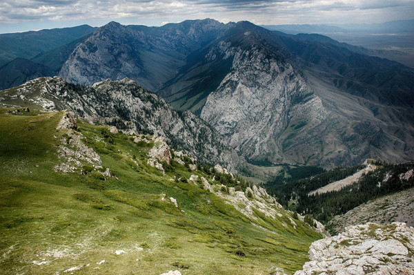 "Зимний пейзаж" - дымчатый кварц, покрытый кристаллами кальцита