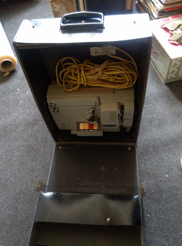 Кинопроектор «Русь» (цены от 500 р до 2500 р) есть 2 шт в разных кейсах(говорят просто разных годов выпуска)