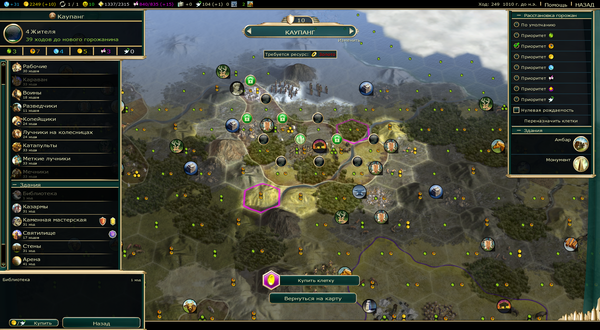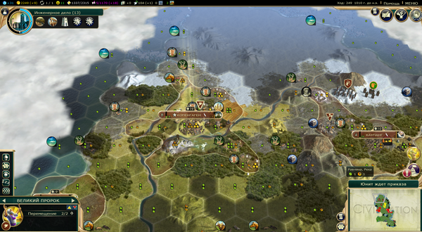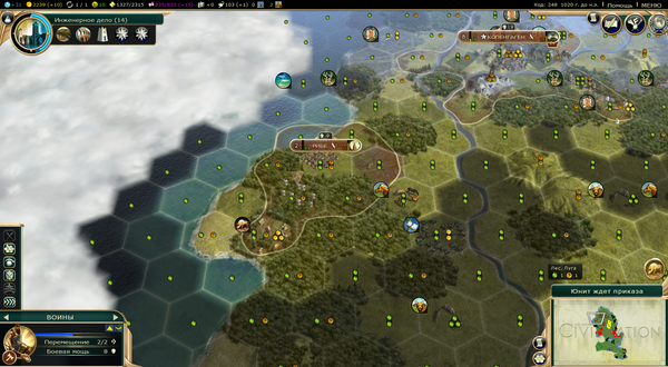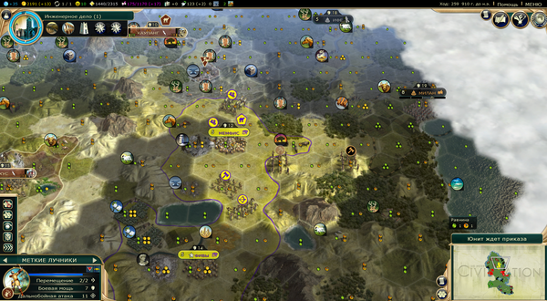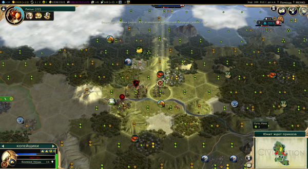 С южным лагерем тоже целая история случилась. На той клетке где стоят сейчас копейщики появились лучники. Копейщики же стоили справа от лагеря. Генерал хотел ударить копейщиков, но это было невозможно из-за зоны контроля. В итоге копейщики просто сдвинулись на 11 часов от своего первоначального местоположения, и только на следующих ход забрали копейщиков. Полную историю сможете увидеть на стриме. Там был целый спор по поводу загрузки сейва.
