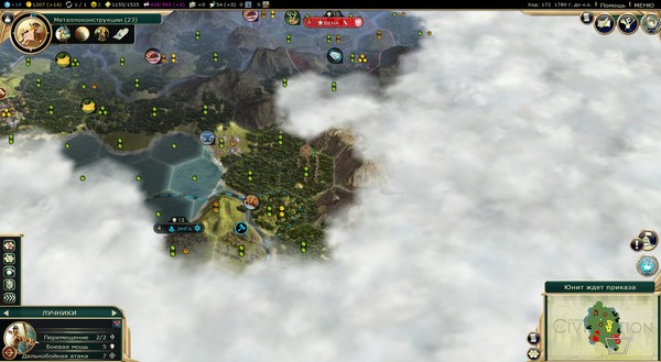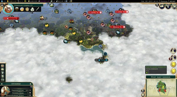 Лучники спускаются южнее, но ничего интересного у Рамзеса не находят. Кстати, мы тут правительством задумались: как может Египет строить пирамиды, если у него все принятые институты - традиция, хотя четко видны пирамиды.