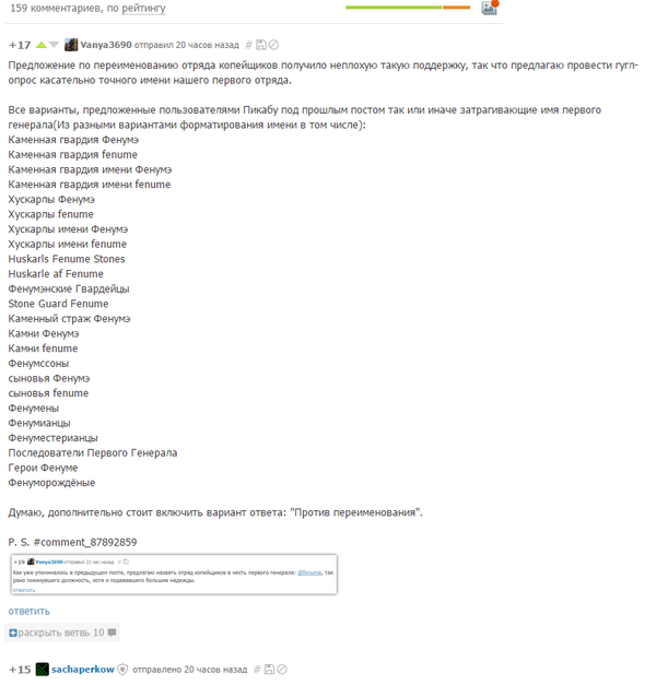 Чуть позже была принята идея выносить вопросы на голосование на стороннем ресурсе. То есть, все вопросы, которые можно решить голосованием, стали выносится туда. Остальные вопросы также решались в комментариях.
