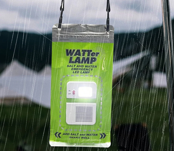 Лампа, способная работать от солёной воды. Подходит для кемпинга и аварийных ситуаций. Не требует обычных батареек.