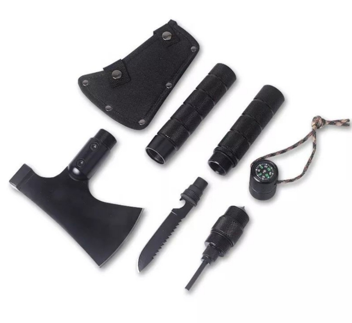 Многофункциональный топор с дополнительными инструментами. Подходит для походов и выездов на природу.