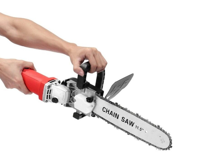 Адаптер, превращающий болгарку в мини-цепную пилу. Подходит для резки веток и мелкой древесины. Устанавливается на стандартную УШМ.