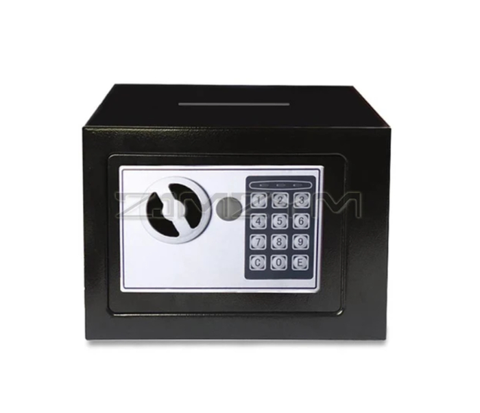 Компактный сейф для хранения денег и документов. Оснащён цифровым кодовым замком. Корпус выполнен из стали.