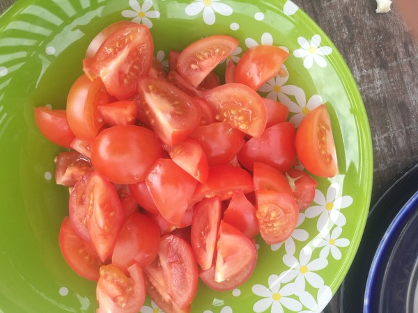 -помидоры черри. (Важно использовать именно черри!) Если оч мелкие, то 6-8 штук, если крупные, как у меня, то поменьше, штуки 4, примерно.