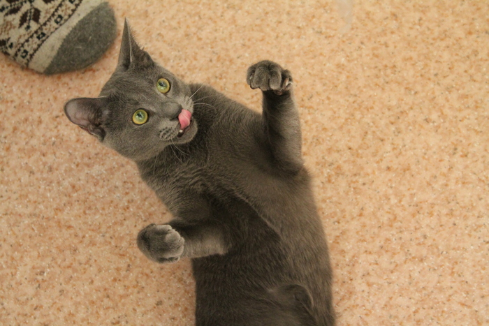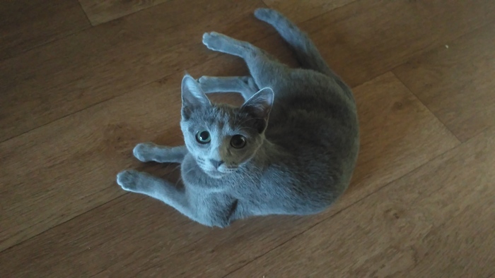 Маленький ещё совсем, но лапы как у Шлёпы, а хвост длиннее. Нам с женой сразу показалось, что это предпосылки к весьма крупному коту.
