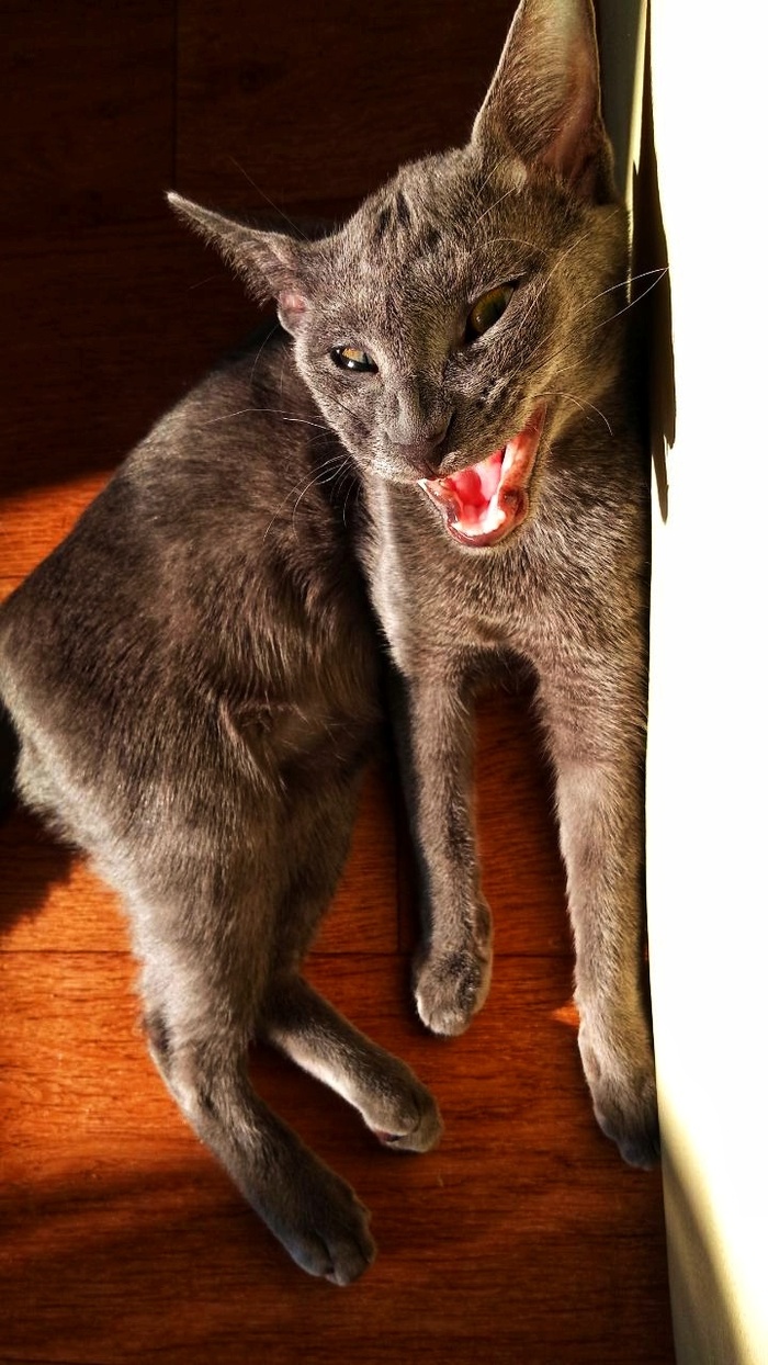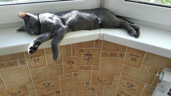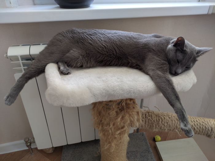 Джо на всё наспать. Если он хочет спать, то его мало что может побеспокоить. Здесь на фото он сонный т.к я шумел шуруповёртом и молотком (делал комплекс котам), а он пытался спать. В итоге, кстати, уснул.