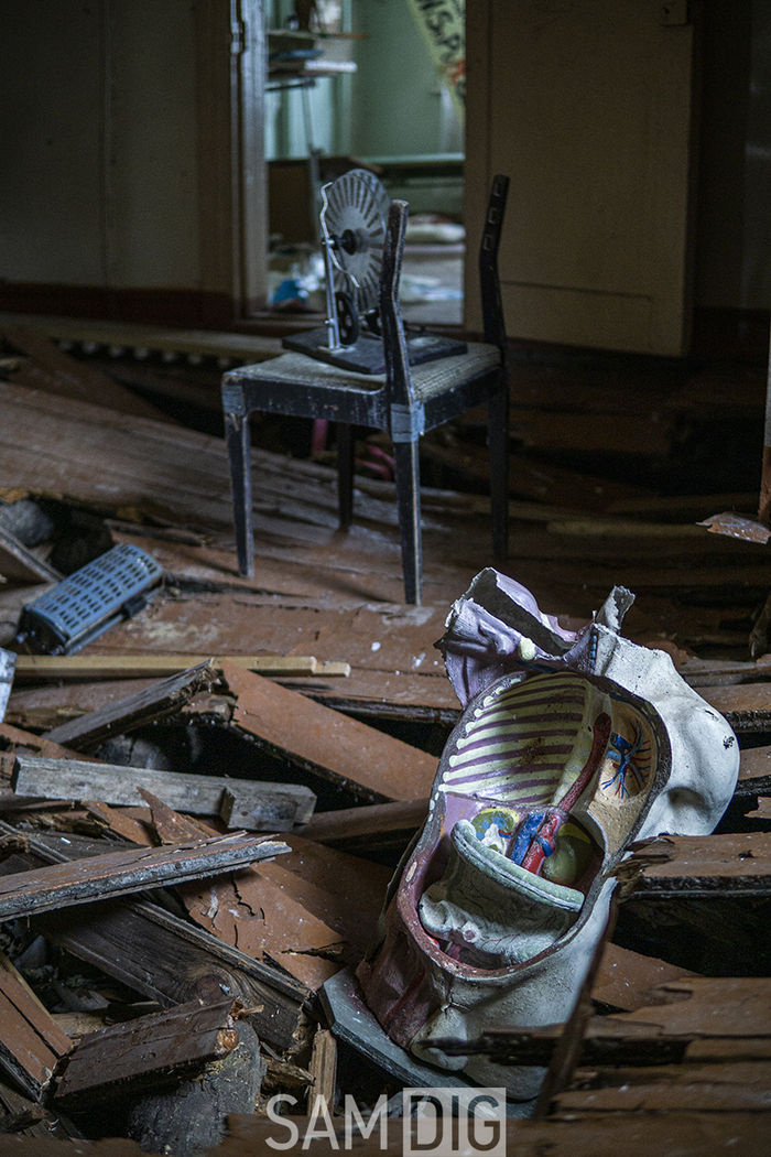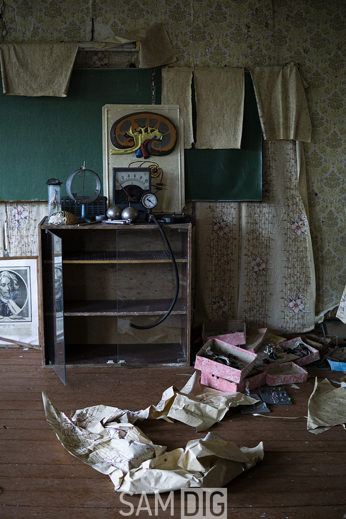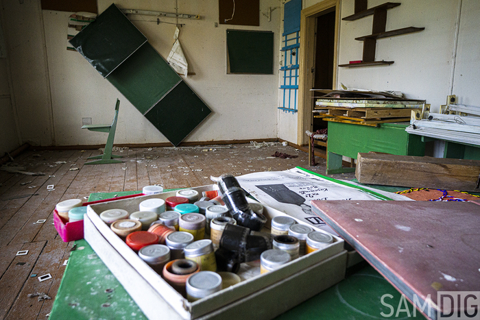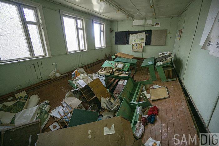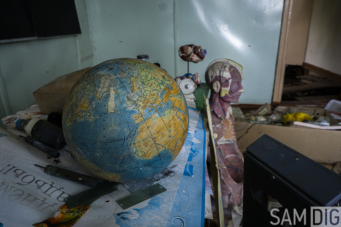 Хоть большая часть оборудования и учебных материалов была вывезена, внутри всё равно есть на что посмотреть. В настоящее время здание просто стоит законсервированное, ожидая своего "подарка судьбы".