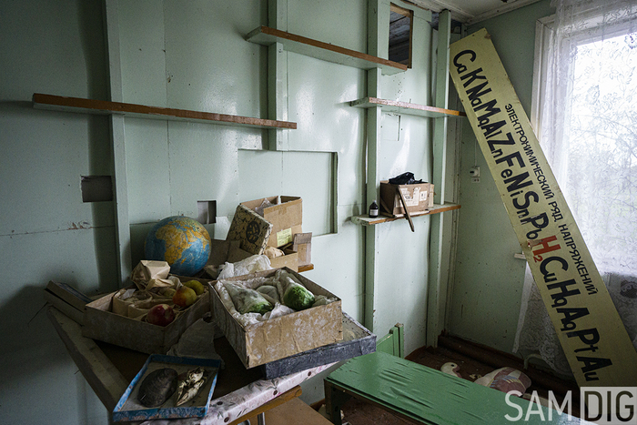А дальше мы оказались в кабинете физики. Это один из самых сохранившихся кабинетов, наряду с биологией.