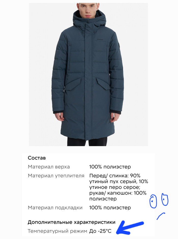 Выбирал себе куртку тут, на не очень холодную зиму. До -15. Понравилась одна вроде. На бирках и на сайте смотрю: "до -20. ЗИМНЯЯ!".
