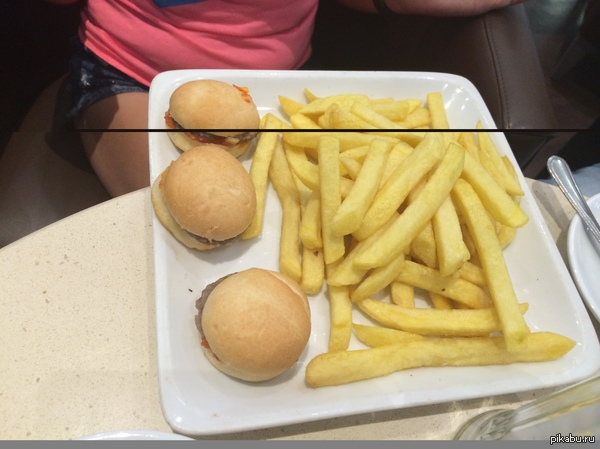 sanches82 Минигамбургеры 11 лет назад В аэропорту Франкфурта заказали гамбургеры - принесли вот это! Размер картошки фри стандартный! [моё] Мини Гамбургер