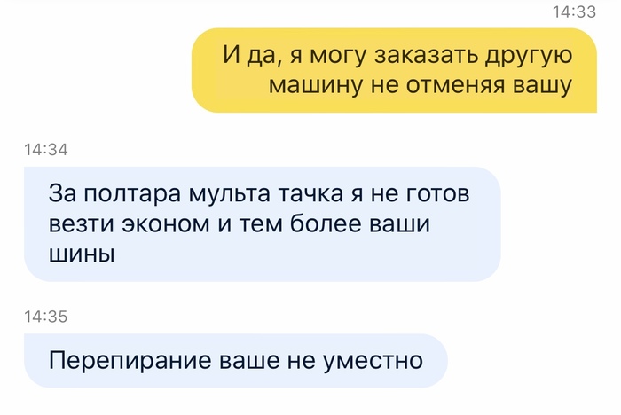 sannya @Yandex.Taxi странная логика у ваших водителей 7 лет назад Показать полностью 6 [моё] Яндекс Такси Длиннопост Жалоба