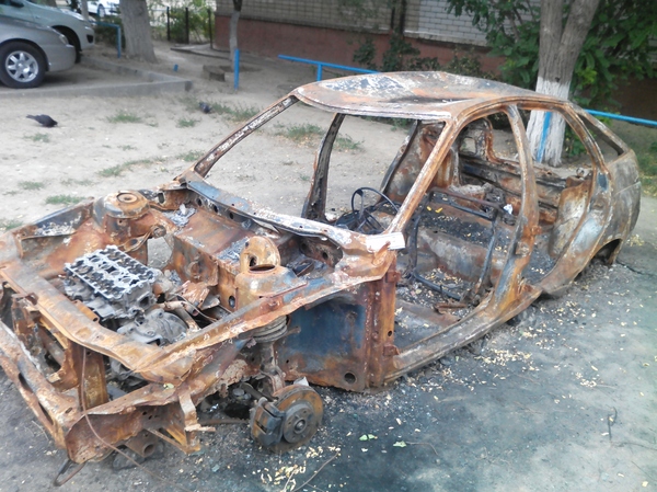 Сегодня проходила домой мимо скелета иномарки, которая сгорела ещё полгода назад и теперь её останки ржавеют у всех на виду возле мусорных баков. В общем, привычная картина. Но что-то зацепило взгляд, и я сначала не поняла в чём дело.