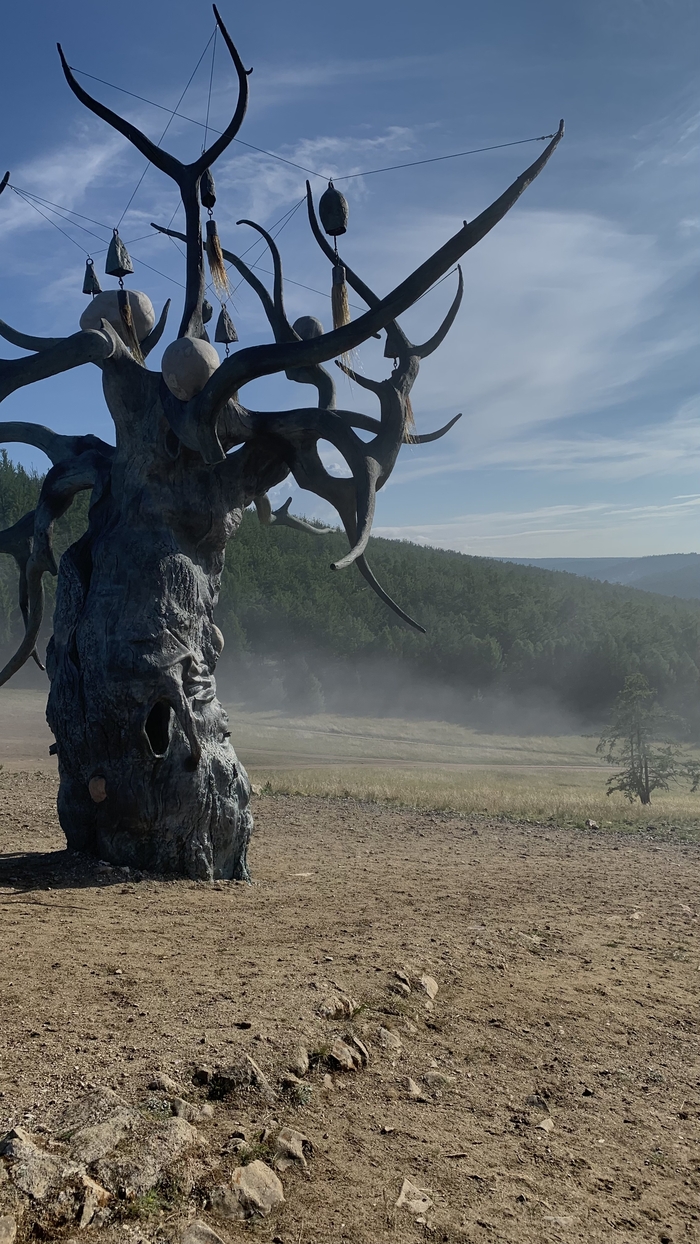 Скульптура установлена в Иркутской области в серверной части Ольхона, не далеко от мыса Хобой в 2018г. Автор - один из известных скульпторов России и очень очень известный человек в Бурятии Даши Намдаков. С самого начала планирования установки было много споров о нанесении вреда экосистеме острова этим монументом. Так как из за большого потока туристов и машин, стоянки в одном месте, травяной покров острова будет нарушен. Кстати, где-то я читала, что даже квадроциклы запрещены на острове, так как они уничтожают растения эндемики. Но в прокате пару штук я видела