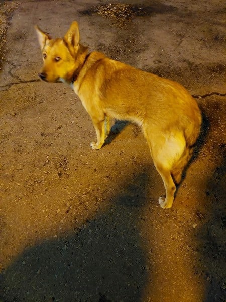 ,, Собака бывше домашняя. Кто то видно что её выкинул, с ошейником. Живет в десятом квартале всю осень. Очень любит детей. Но вчера её встретила, её скорее всего кто то избил или она простыла. Очень грустная, не ест, не пьет. И не играет. Очень жалко её. Погибнет на улице"