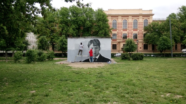В Питере, по адресу: Греческий проспект, 8а, Некрасовский сад, было крутое и позитивное граффити с мистером Бином