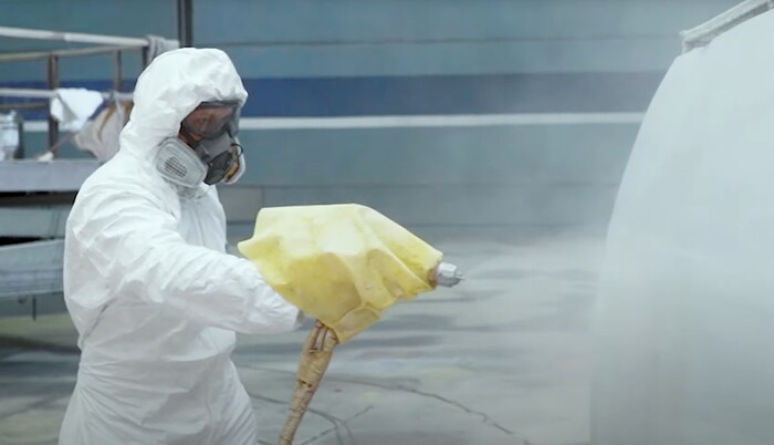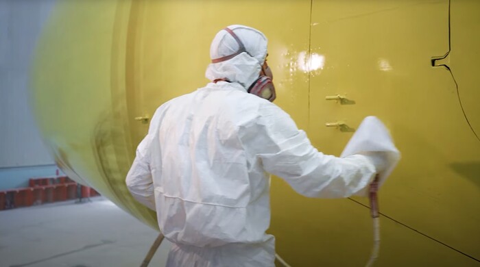 Краску может нанести и оператор вручную, и специальные роботы и манипуляторы — в зависимости от задачи и того, насколько сложной является поверхность. Делается это в специальным камерах с системой всасывания воздуха — аспирацией. Так частицы краски, которые не долетели до поверхности, попадают обратно в цикл окраски, расход материала уменьшается, заказчик счастлив (наверно).