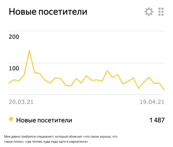 Мне давно требуется специалист, который объяснит «что такое хорошо, что такое плохо», «где теплее, куда надо идти в маркетинге». Продажи есть и даже растут, но поиск маркетолога откладывается «на потом». Человеческий мозг так устроен, что понижает приоритет непонятных и неинтересных дел. Мысль о собеседовании вызывают у меня боль. Хотя работы для него предостаточно — метрики, статистика за 2 года. Возможно я боюсь, что он скажет «Ну что это за бизнес. Экономика не сходится, расходимся».