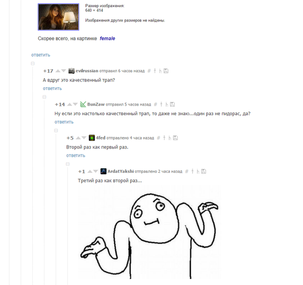 Идем с другом по аллее, обсуждаем насущные темы. Постепенно с нами ровняется компания девушек в составе 3х человек. То они глянут на нас, то мы на них. Ничего конкретного, идем дальше. Видя, что знакомство не складывается, одна из них (как позже оказалась Таня) решила по-видимому пойти "Ва-Банк", что бы конкретно так привлечь внимание. Татьяна, что есть мочи, со всей силы рыгает на всю улицу. Сказать, что я охренел с другом- это ничего не сказать. Далее Татьяна разрывается в хохоте, а её подруга, охреневшая не меньше нашего, орет на нее "Таня Блять" и дает подзатыльника)))) Ясное дело, что знакомства не получилось, девушки стремительно ретировались с места преступления, но привлечь к себе внимание, да еще какое, однозначно смогли.