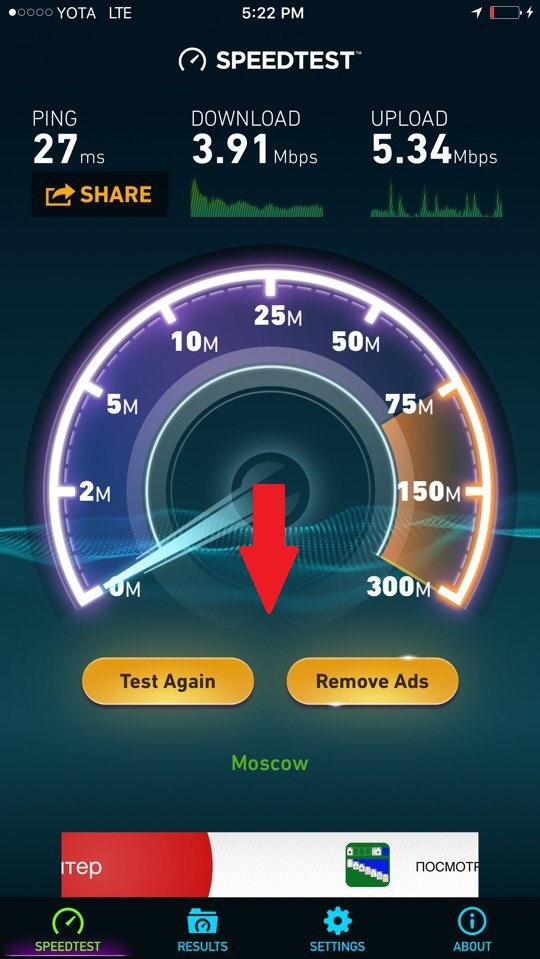 Если в мобильном приложении Spеed test после теста опустить "спидометр" вниз, как показано на скриншоте, можно получить милую историю: